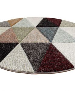 Kon har en ljus bottenfärg med flera block i olika dova färger. Genom att mattan är gjord i carvingteknik så blir färgerna och detaljerna mer framträdande.