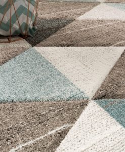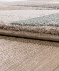 Kon Pastell har en cremevit botten med sandfärgad langettering på långsidorna. Mattan har ett kon-mönster i lugna och behagliga pastell toner av turkost och sandgrått. Mattan är gjord i carvingteknik, vilket innebär att den har utskärningar för att färger och detaljer skall bli mer framträdande.