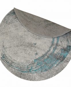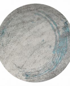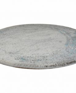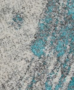 Kos Turkos har en vit-grå bottenfärg med grå langettsöm som löper längs långsidorna. Mattan har turkosa färgpartier som ger en fin effekt i cirkelmönstret.