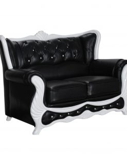 Kungs i skinn är en klassisk vacker soffa som kommer hålla designmässigt lång tid framöver. Soffan Kungs har ett mycket vackert träarbete och kristaller på soffan.