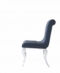 En härlig matrums stol i svart med svängs ryggbricka och med ett lejonhuvud på ryggen ger denna matrums stol ett magnifikt intryck. Med nozag resår i sitsen får du en bra komfort, även under långa sittningar. Benställning med rokokoben i silverpolerad metall.