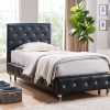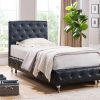 Stilren och modern sängram från Italien, djuphäftade knappar och klädd med skinn. Sängen har även lejonbenen i krom.