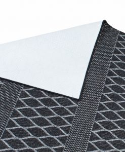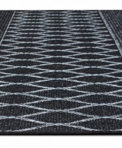 Lissabon har en svart bottenfärg med matchande langettering och pryds av ett stilrent mönster i vita toner. Eftersom mattan inte har någon tät lugg där smuts kan fastna, så är Lissabon lätt att rengöra och dammsuga.