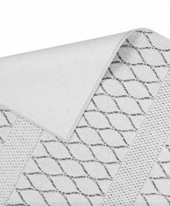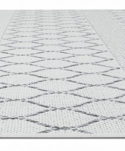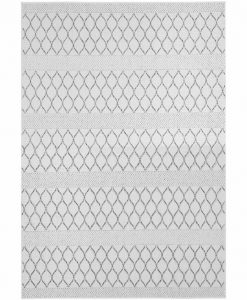Lissabon har en vit bottenfärg med matchande langettering och pryds av ett stilrent mönster i grå toner. Eftersom mattan inte har någon tät lugg där smuts kan fastna, så är Lissabon lätt att rengöra och dammsuga.