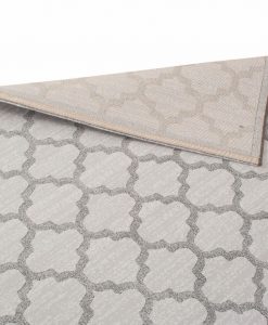Livin Bell är en maskinvävd med grå bottenfärg. Mattan har ett stilrent och trendigt marockanskinspirerat mönster i grå ton. Själva mönstret har lite lägre lugghöjd, vilket ger mattan struktur som gör mönstret mer framträdande. Livin Bell är sydd med en grå langettsöm och trådarna har en fin lyster som ger mattan en skimrande effekt, beroende på hur ljuset faller.