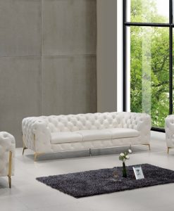 Lorenzo är spektakulära handgjorda soffgrupp i Chesterfield-liknade med handsydda knappar och exklusivt sammets tyg. Dess mjuka, böjda former gör det både inbjudande och fantastiskt att sitta på. Chesterfieldtyp klädd med offwhite sammet och benställning av guldmetall.