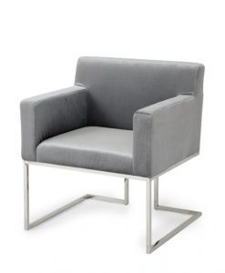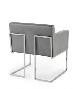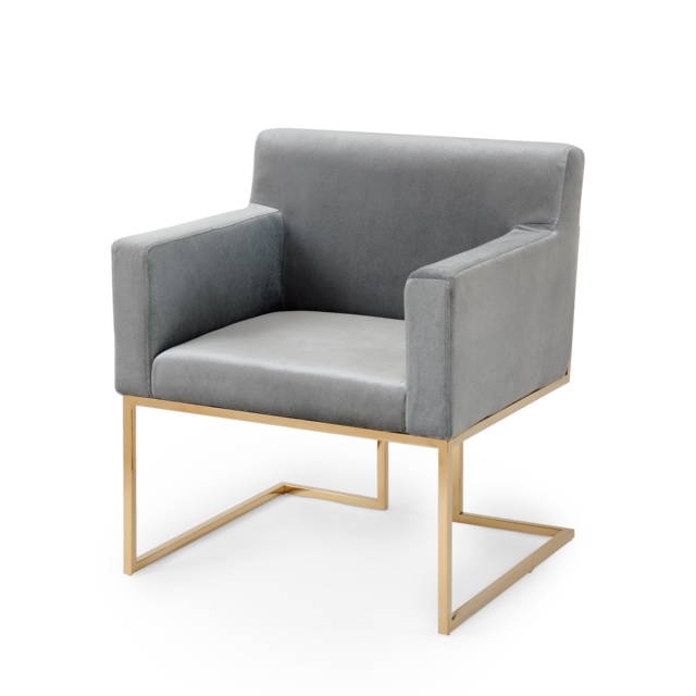 Vacker stol i loungemodell. Stoppad sammetsklädd grå middagsstol med en snygg inramning av metallben . Snygga och bekväma stolar är alltid uppskattat när vännerna kommer över på besök