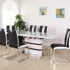 Högblankt lackerat modernt matbord med en smart iläggsskiva som man enkelt gömmer i bordet när man inte har den i. Det sitter små dolda hjul under benparet på matbordet så att man enkelt kan dra ut det när det är dags att lägga i iläggsskivan. Matbordet är i vitlackad och topp skivan är i vit glas. Passar bra att kombinera med resten av Madrid kollektionen.