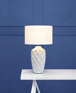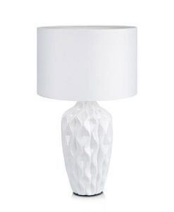 Angela är en fin bordslampa från Markslöjd i vit mönstrad keramik. Vit textilskärm med skärmring och 1,5m textilsladd med strömbrytare på sladden. Stor lamphållare (E27). Max 60W glödlampa eller motsvarande styrka i halogen, lågenergi eller LED. Finns även i svart.