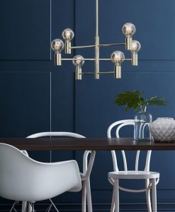 Capital är en nyhet från Markslöjd 2016. En Elegant taklampa i krom eller mässing med vridbara armar och plats för sex ljuskällor. Gör sig väldigt väl tillsammans med carbonlampor (finns under tillbehör). Justerbar i höjd samt med stora, (E27) lamphållare för max 60W glödljus eller motsvarande styrka i halogen, lågenergi eller LED. Ljuskällor medföljer ej. Upphäng för takkrok. Takkontakt klass 1 (Jordad) medföljer.