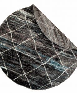 Marocko classic har en mörkgrå bottenfärg med en matchande langettsöm som löper runt längs långsidorna. Mattan har blå och röda inslag som kombineras med ett smalt rut och cirkelmönster i en cremevit ton. Trådarna i mattan har en fin lyster som ger en skimrande effekt, beroende på hur ljuset faller.