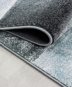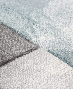 Matrix Ljusblå har en kort skuren lugg och rutmönster i melerade toner utav vitt, grått och ljusblått. Mattan har en grå langettering på långsidorna och kortsidorna är förstärkta med lim, vilket gör mattan extra tålig. Matrix Ljusblå är gjord i carvingteknik, vilket innebär att den har utskärningar för att få detaljer mer framträdande.