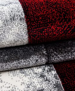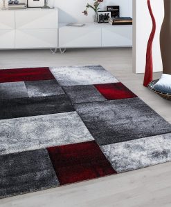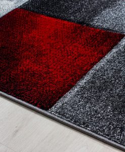 Matrix Röd har en kort skuren lugg och rutmönster i melerade toner utav vitt, grått, svart och rött. Mattan har en mörkgrå langettering på långsidorna och kortsidorna är förstärkta med lim, vilket gör mattan extra tålig. matrix Röd är gjord i carvingteknik, vilket innebär att den har utskärningar för att få detaljer mer framträdande.