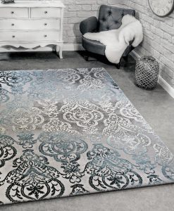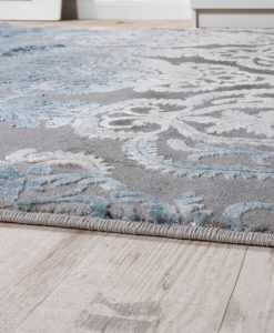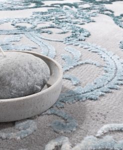 Thema Medallion har en grå botten och pryds av ett medaljongmönster. Medaljongerna skiftar i färgstyrka och går från ljus cremevit till olika nyanser i turkost. Eftersom mönstret är gjort i carvingteknik så blir färgerna och detaljerna även mer framträdande.