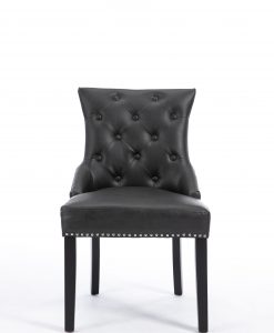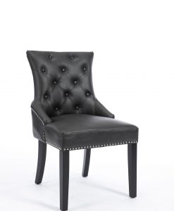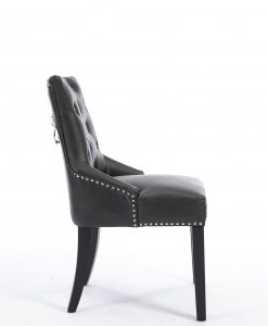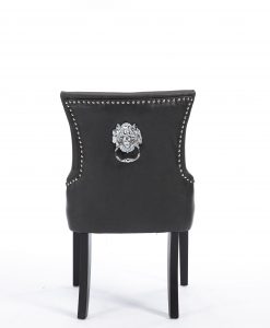 Stol i snyggt konstläder med dekorspik och handtag i form av lejon ornament samt svarta ben. Snygga klädda knappar på stolsryggens framsida ger stolen dess karaktär