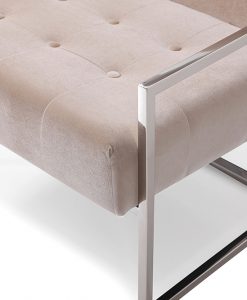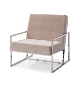 Behöver du en avkopplande fåtölj men kan inte hitta en som kombinerar både elegans och komfort då är Natalie Fåtöljen för dig.Tillsammans med den snygga krom färgen och det glänsande sammetstycket, kommer den här delen att vara ett rums centrum för uppmärksamhet.