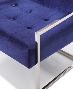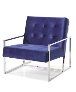 Behöver du en avkopplande fåtölj men kan inte hitta en som kombinerar både elegans och komfort då är Natalie Fåtöljen för dig.Tillsammans med den snygga krom färgen och det glänsande sammetstycket, kommer den här delen att vara ett rums centrum för uppmärksamhet.