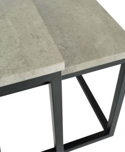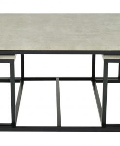 Nelly är ett modernt och stilrent satsbord . Bordet har en snygg topp i melamin med en elegant betongimitation. Underrede i svartlackad metall. Tack vare att toppen är tillverkad i melamin är bordet mycket lättskött. I detta set ingår 3 st bord, ett större kvadratiskt med två mindre som du enkelt kan skjuta in under det stora