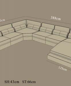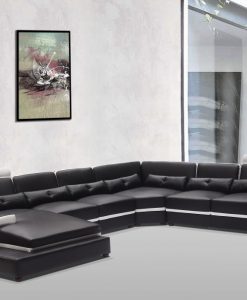 I den stora generösa och prisvärda Omega u-soffa i skinn får många plats i, ingår 2 st nackstöd samt en fräck belysning.