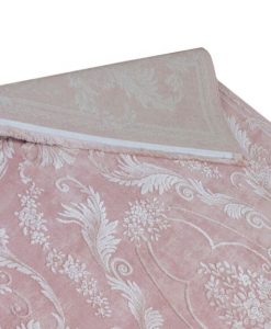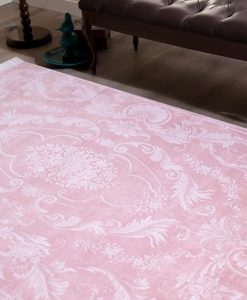 Palace Garden är en otroligt mjuk matta som kommer i en puderrosa bottenfärg. Mattan har matchande langettering på långsidorna medan kortsidorna pryds utav eleganta fransar. Palace Garden har ett vitt medaljongmönster som är gjort i high-low effekt, vilket gör mönstret mer framträdande och effektfullt.