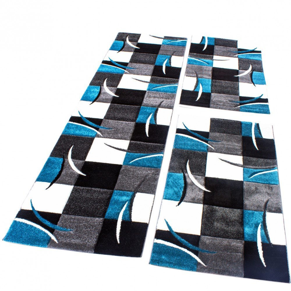 De röda inslagen i den annars svartvita mattan livar upp och ger mattan extra sting.