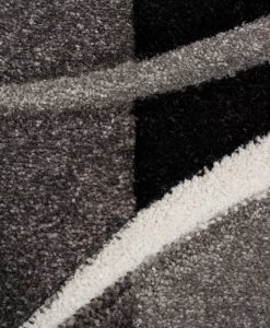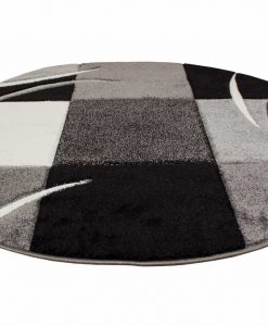 Detta är en maskinvävd matta med skuren lugg som passar bra såväl till soffgruppen som under matbordet. De svarta inslagen i den annars svartvita mattan livar upp och ger mattan extra sting.
