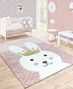 Rabbit Queen är en stilren barnmatta som kommer i mjuka pastelltoner. Mattan har en rosa botten med vita små prickar och pryds utav en söt kanin med drottning krona. Rabbit Queen har en rosa langettering på långsidorna och är gjord i carvingteknik, vilket innebär att den har utskärningar för att detaljer skall bli mer framträdande.