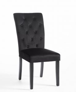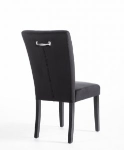 Härligt hög matrums stol klädd i sammets tyg, står på ben av trä och med handtag på ryggen.. Försedd med hög rygg och pip stoppad framsida ger denna en härlig komfort för långa middagar.