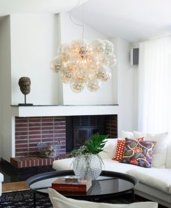 Lampan består av 32 glaskulor som skapar denna häftiga läckra form på Gross lampan. Det skall sitta åtta stycken ljuskällor med G9 sockel som lyser upp glaskulorna