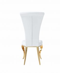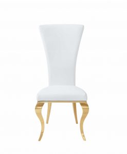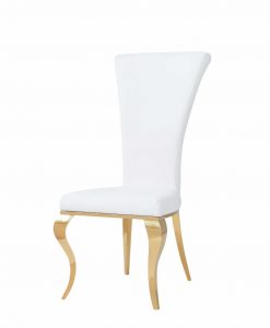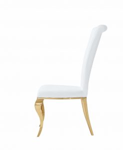 Elegant designad matrums stol i vit och guld. Med nozag resår i sitsen får du en bra komfort, även under långa sittningar. Benställning med rokokoben i guldpolerad metall.