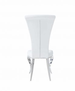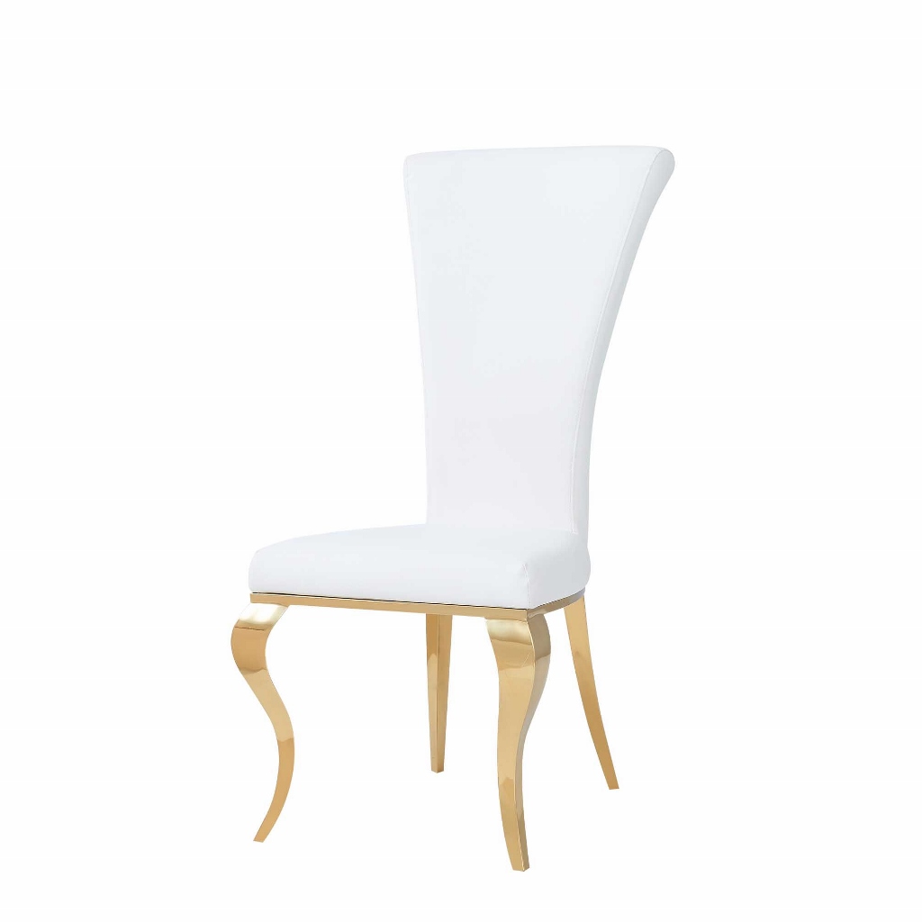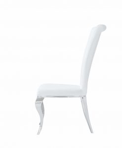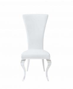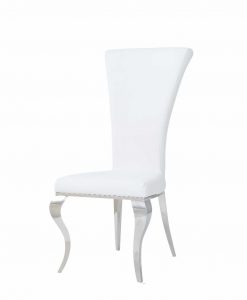 Elegant designad matrums stol i vit och silver. Med nozag resår i sitsen får du en bra komfort, även under långa sittningar. Benställning med rokokoben i silverpolerad metall.