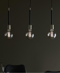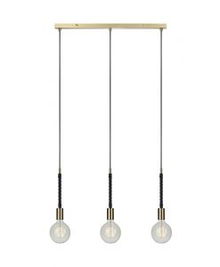 Saddle taklampa från Markslöjd i mässing och läder. 1,5m svarta textilsladdar. Fast installation med bygelupphäng. Stor lamphållare (E27). Max 60W glödlampa eller motsvarande styrka i halogen, lågenergi eller LED.