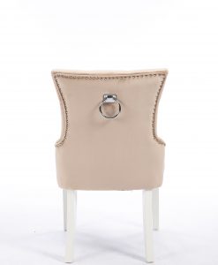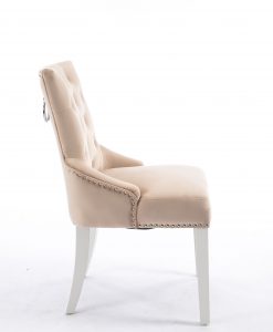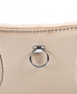 Denna matrumsstol lämnar du inte i första taget! Klädd med slitstark sammet och med dekor nitad runtom. På ryggen sitter en stor silverring. Finns även matchande barstolar.
