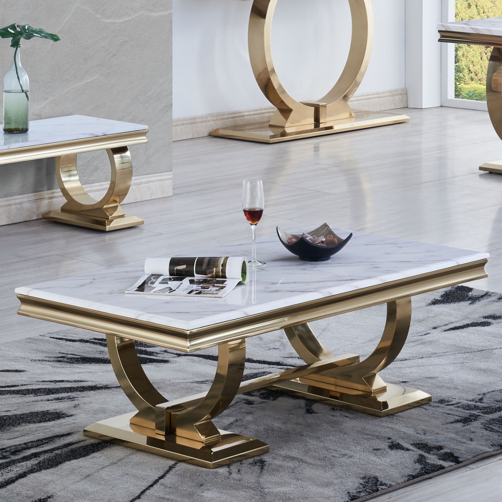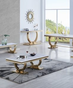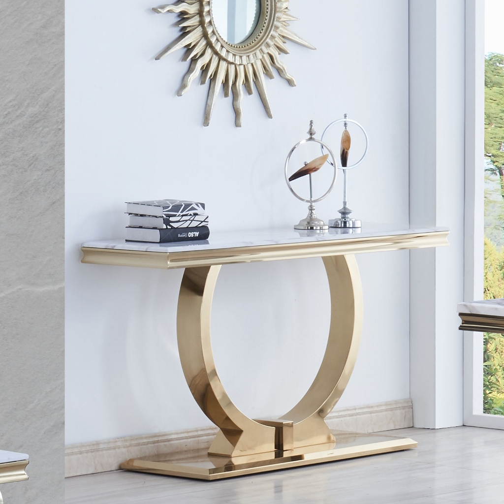 Exklusivt, prisvärt bord i guldmetall. Med skiva av vit marmor massa. Ser betydligt dyrare ut än det är. Ett verkligt fynd.