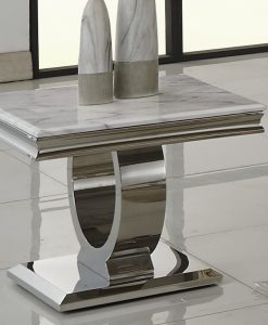Exklusivt, prisvärt bord i silvermetall. Med skiva av vit marmorino massa. Ser betydligt dyrare ut än det är. Ett verkligt fynd.