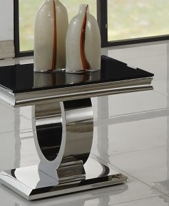 Exklusivt, prisvärt bord i silvermetall. Med skiva av svart glas. Ser betydligt dyrare ut än det är. Ett verkligt fynd.