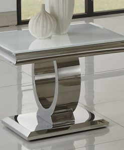 Exklusivt, prisvärt bord i silvermetall. Med skiva av vit glas. Ser betydligt dyrare ut än det är. Ett verkligt fynd.