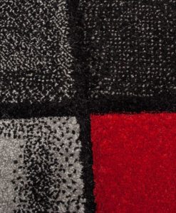 Shadows Röd är en friezematta i färgerna grå, vit och svart med röda färgklickar som skapar en snygg kontrast utan att ta överhand. Mattan har en kort lugg och är maskinvävd. Shadows är tillverkad i carvingteknik vilket innebär att mattan är gjord med utskärningar för att få färger och detaljer mer framträdande, vilket ger en större effekt. Mattan är tillverkad i polypropylen, ett syntetmaterial som är lätt att rengöra och hålla fri från damm och ludd.