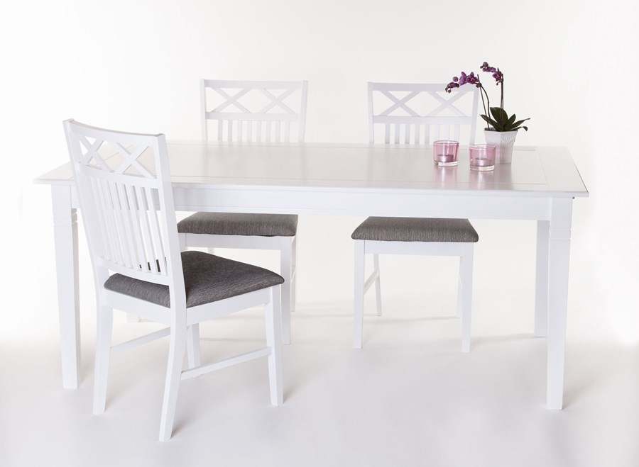 Här ser du Sofiero matgrupp som går att beställa med bord 140cm alternativt 180 cm (1st iläggsskiva 40 cm går att köpa till i alla dessa möbelgrupper), samt med fyra, sex eller åtta stolar. Du väljer själv det som passar dig bäst! Matgruppen är rabatterad och billigare än om varorna skulle köpas per styck. Bordet om 180 cm är 180 x 95 x 75 cm stort. Bordet om 140 cm är 140 x 95 x 75 cm stort. Stolen är 95 cm hög och passar perfekt till matbordet