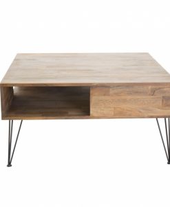 Soffbordet har en snygg design av solid trä! Den gedigna bordet bärs upp av stabila ben av svartlackad metall.