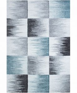 Square har en kort skuren lugg och rutmönster i melerade toner utav turkost, grått och vitt. Mattan har en turkos langettering på långsidorna och kortsidorna är förstärkta med lim, vilket gör mattan extra tålig. Square är maskinvävd i polypropylen, vilket är ett syntetmaterial som är lätt att rengöra och hålla fri ifrån ludd och damm.