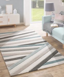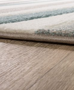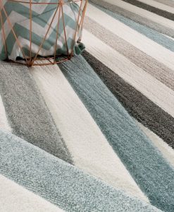 Stripe pastell har en cremevit botten med sandfärgad langettering på långsidorna. Mattan har ränder i lugna och behagliga pasteller toner av turkost och sandgrått. Mattan är gjord i carvingteknik, vilket innebär att den har utskärningar för att färger och detaljer skall bli mer framträdande.