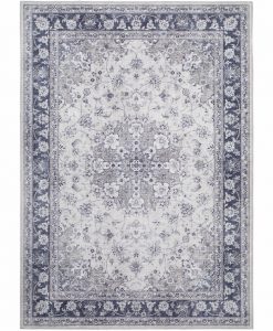 Tabriz är en elegant matta som har stilrent mönster med orientalisk inspiration. Mattan har en melerad ljusgrå bottenfärg med tryckt mönster i grå och blå toner. Mattans kanter pryds utav en sydd langettering som består av riktiga stygn, vilket ger en exklusiv och lyxig känsla.