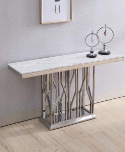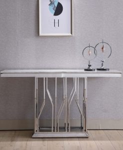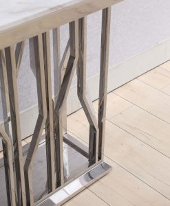 Thema by J-P.Design är en exklusiv möbelkollektion som står ut från mängden. Ett otroligt elegant och spektakulär konsol i marmorino med vackert designad kromad fot. Thema tillverkas för hand och är ett högkvalitativt, stilrent och elegant konsol.