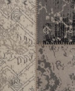 Velvet Patch är en maskinvävd wiltonmatta med inspiration utav patchwork där man tar olika bitar och sätter ihop. Mattan har ett blandat blom och rutmönster i olika grå toner.