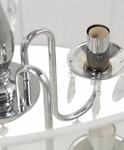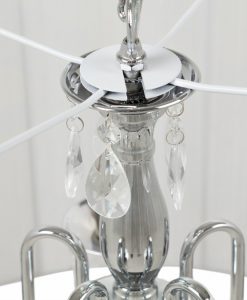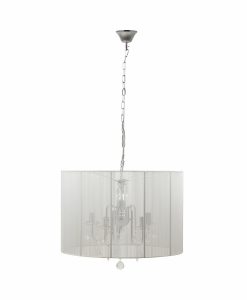 Vera är en modern kristallkrona med vit tyg skärm som ger en härlig effekt på på prismorna och ljuset. Vera är mycket populär bland våra kunder!
